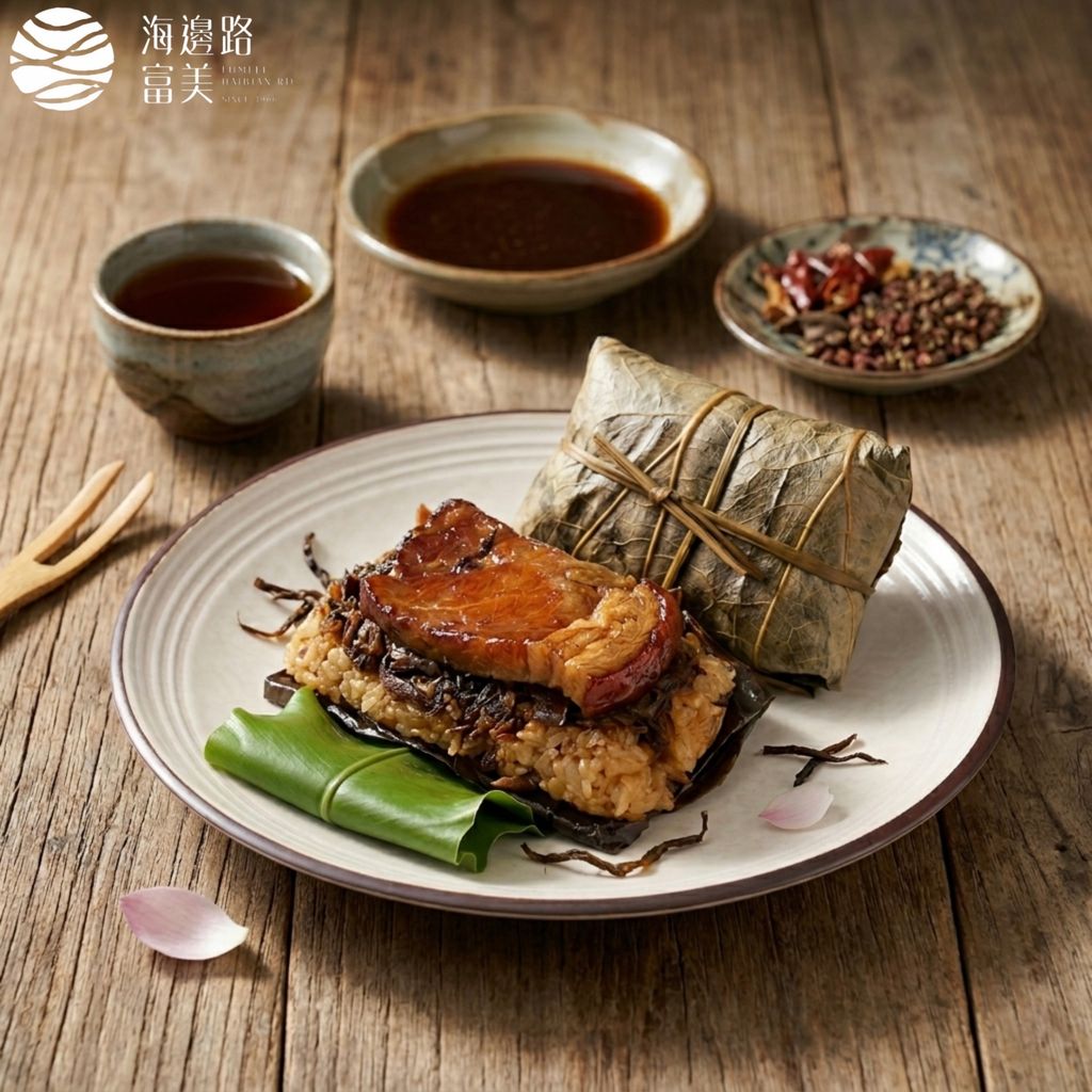 精挑細選的荷葉緊緊包覆,蒸煮時釋放天然葉香,讓整顆粽子多了一層清雅韻味。